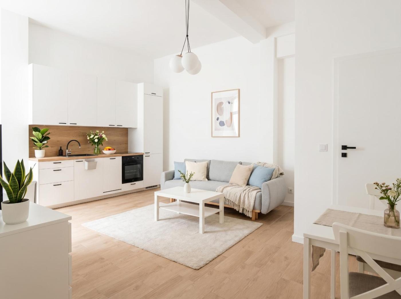 Apartament typu Deluxe. This apartment is comprised of 1 living room, 1 separate bedroom and 1 bathroom with a walk-in shower and free toiletries. The well-fitted kitchenette has a stovetop, a refrigerator, kitchenware and an electric kettle. This apartment features a washing machine, flat-screen TV with streaming services, ancourtyard view, as well as chocolate for guests. The unit offers 2 beds. Apartament - 4 osobowy. Powierzchnia pokoju ok.: 32 mkw. ;