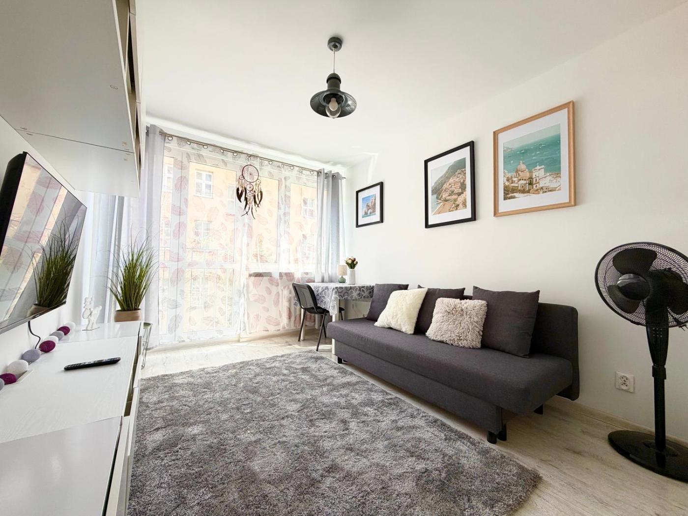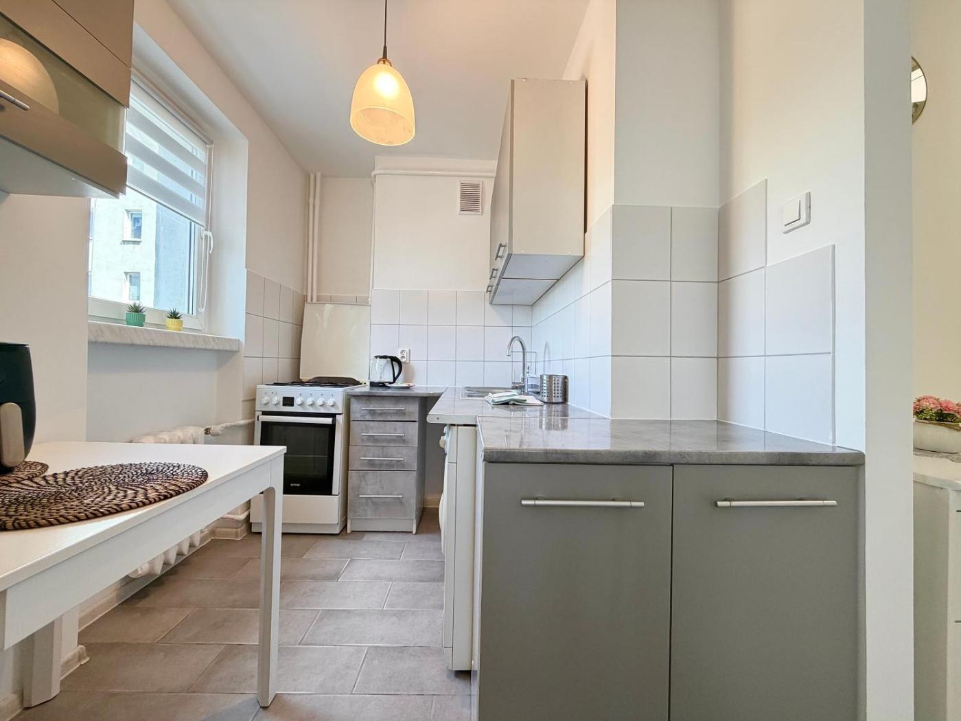 Apartament z 1 sypialnią. Boasting a private entrance, this apartment features 1 living room, 1 separate bedroom and 1 bathroom with a shower and a hairdryer. Guests can make meals in the kitchen that has a stovetop, a refrigerator, kitchenware and an oven. The apartment features a washing machine, a seating area, a dining area, a wardrobe and a flat-screen TV. The unit has 2 beds. Apartament - 4 osobowy. Powierzchnia pokoju ok.: 36 mkw.